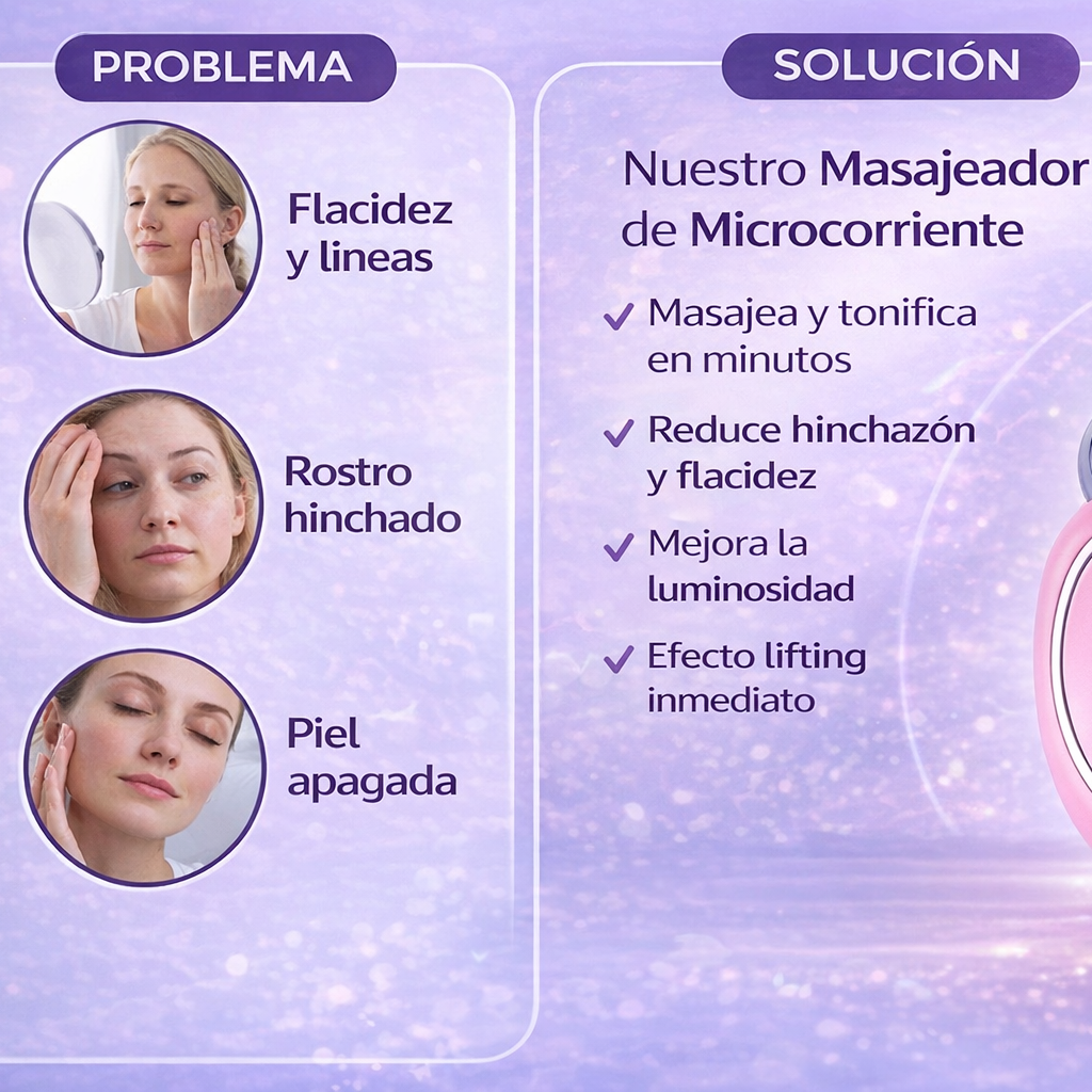 Con microcorriente y masaje, tu piel se ve más tensa, más luminosa y con mejor contorno con el uso constante.